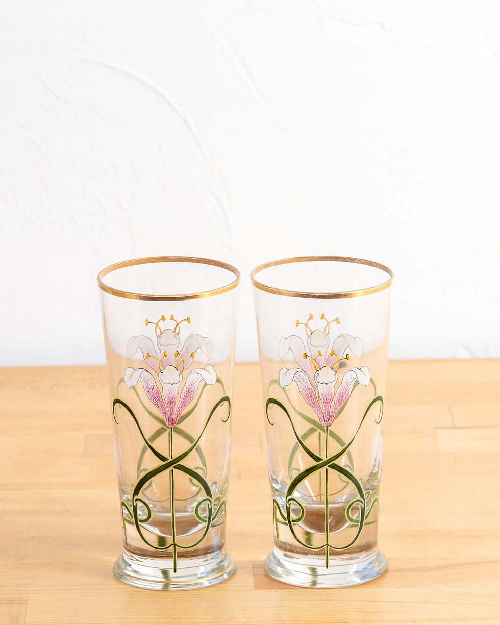 Set of 12 Mid Century Smoke Glass Zodiac Highball Drink Set with Gold Print